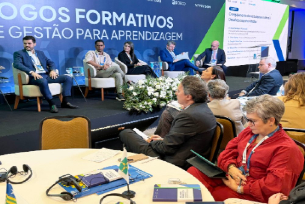 Andreas Schleicher, diretor de Educação da OCDE, apresentou dados e evidências globais sobre gestão educacional, enquanto especialistas de Portugal e França compartilharam experiências e boas práticas desenvolvidas em seus respectivos países.