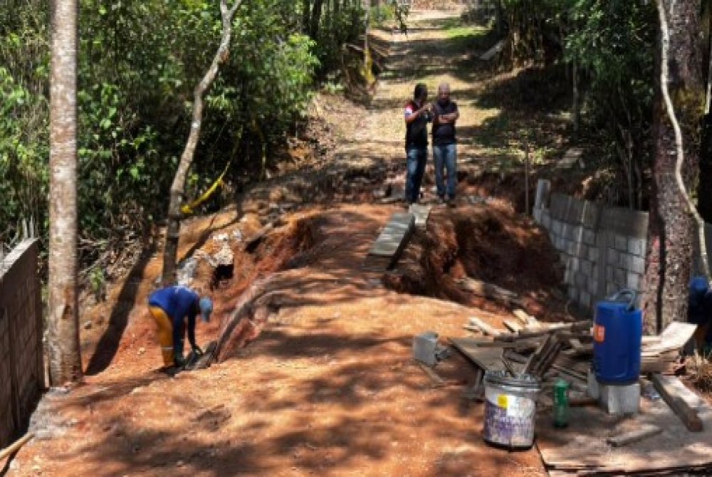 Nos últimos dias, as equipes concluíram a instalação das grandes manilhas para drenagem das águas pluviais e avançaram na compactação do aterro e na finalização das alas de sustentação da ponte. A estrutura também contará com guarda-corpos laterais, garantindo mais segurança para motoristas, pedestres e transporte escolar que circulam diariamente pelo local.