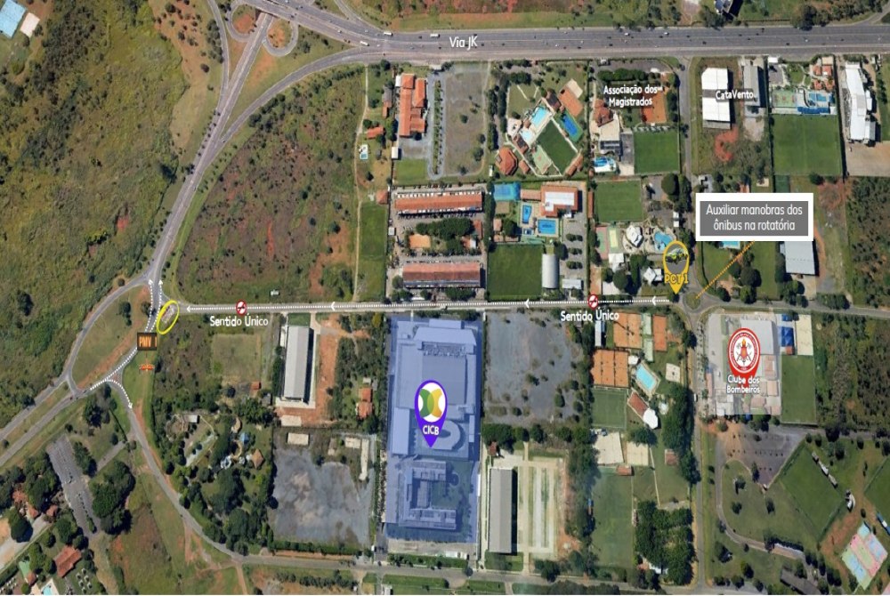 A via SCES Trecho 2, em frente ao CICB, neste domingo tem sentido único, da rotatória do Clube dos Bombeiros em direção à SCES Trecho 3. Ao longo da via, serão posicionados cones para impedir a prática de estacionamento irregular. As equipes farão o controle do tráfego nas vias adjacentes para garantir a segurança viária e a fluidez do trânsito. Além disso, um painel eletrônico de mensagens será utilizado para orientar os condutores.